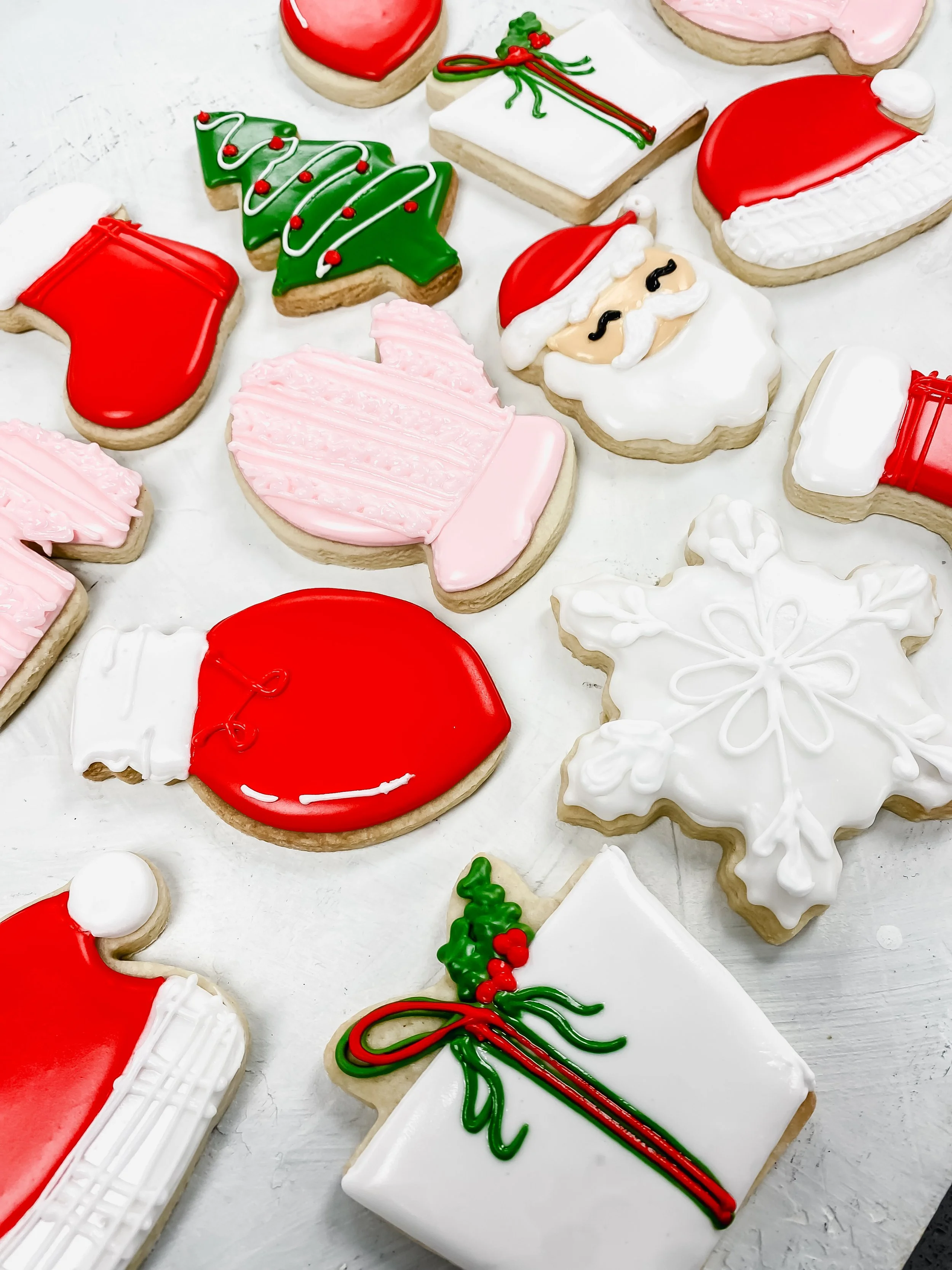 Boxed and bowed ready to gift! each box includes 12 decorated cookies.